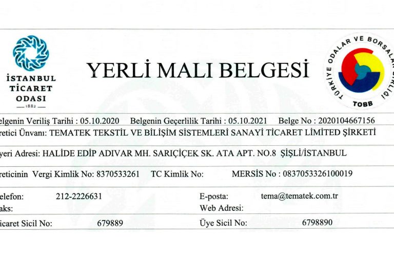 Kosgeb desteklerinde ilave katkı sağlayacak olan Yerli Malı Belgemizi aldık.