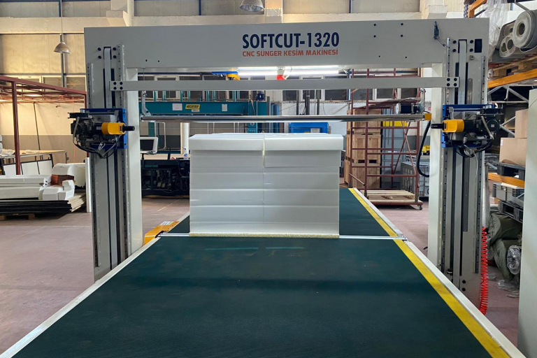 200 x 300 x 130 cm Boyutlarında Blok Sünger İşleme Vibrasyon Testere Bıçaklı Yatay ve Dikey Kesim Sünger Blok Dilimleme…